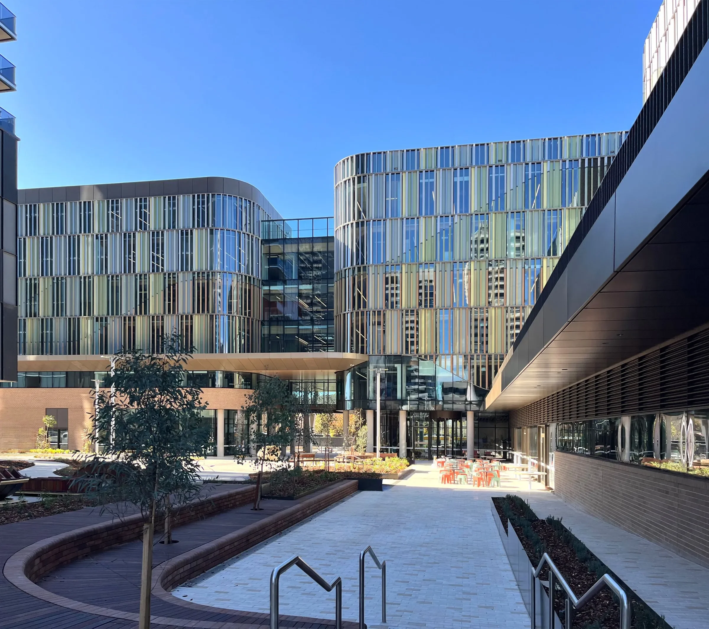 Located in the heart of Woden, the new campus is a catalyst for urban renewal and sustainable economic growth. Embedding Country across the entire development connects the campus and the people who use it to place. It blends with the surrounding environment and creates a culturally safe place for First Nations people to gather, learn and share stories.