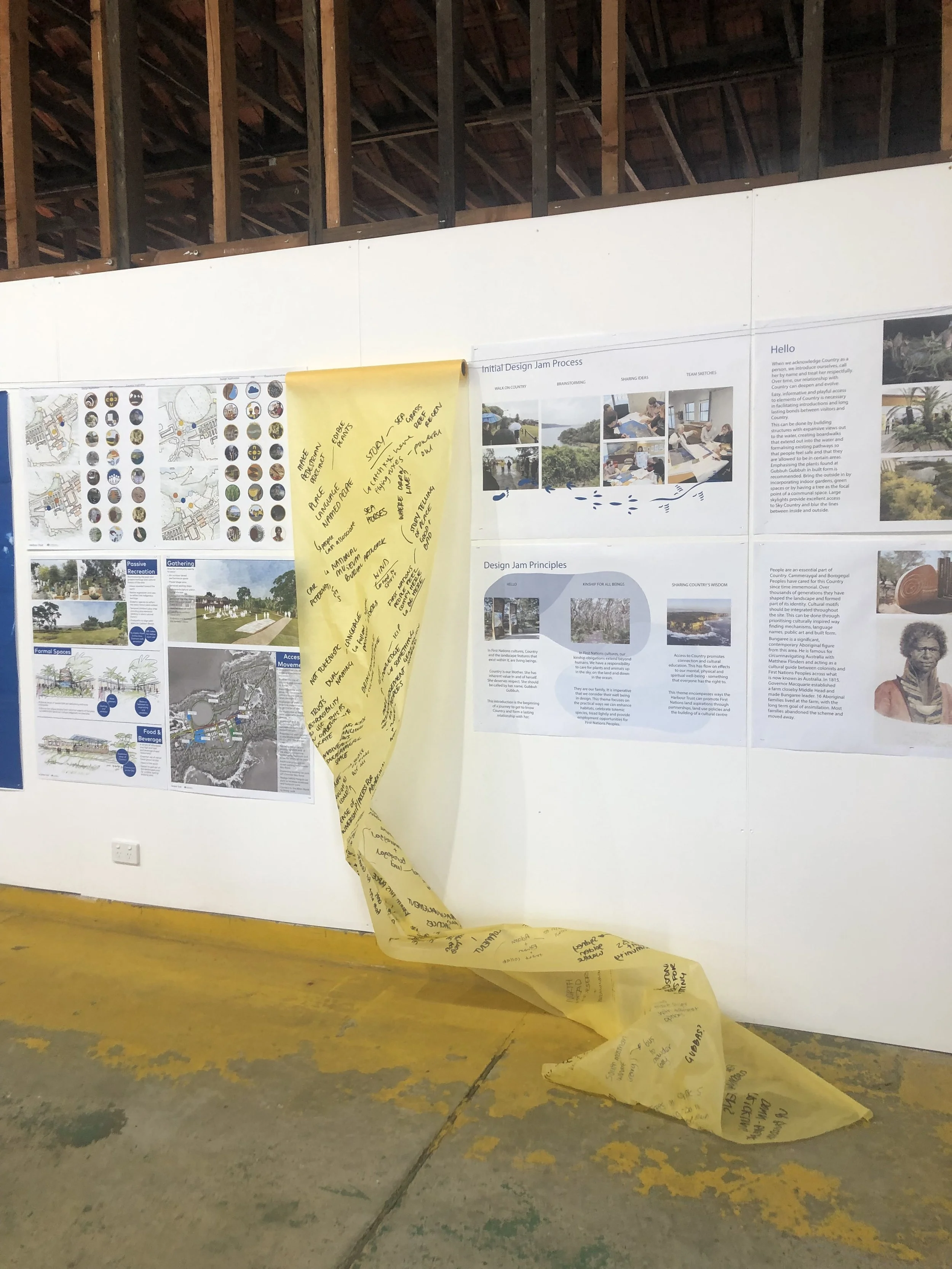 A feedback session was conducted to ensure Community were part of the ongoing project. An exhibition was hosted showing how the Collaborative Design Workshop outcomes had been embedded into the design development. Community commented and drew on print outs that were displayed around the room, with the project team present to answer questions or take note of any concerns.
