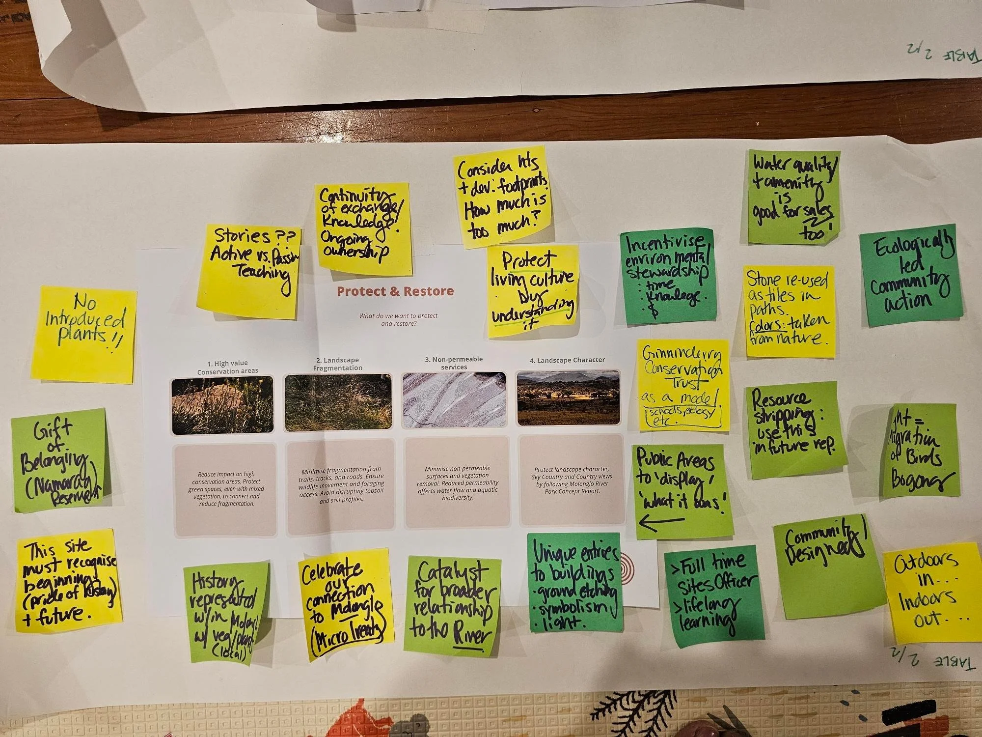 The Yerrabingin team is creating a Designing with Country strategy that reflects the key aspirations and cultural expressions of the local First Nations Community. Building on the previous Connecting with Country engagement by other consultants, Yerrabingin conducted desktop research for the site, and presented back to the local First Nations Community for feedback and input into the elements analysis and understanding of the site’s Place in Country.