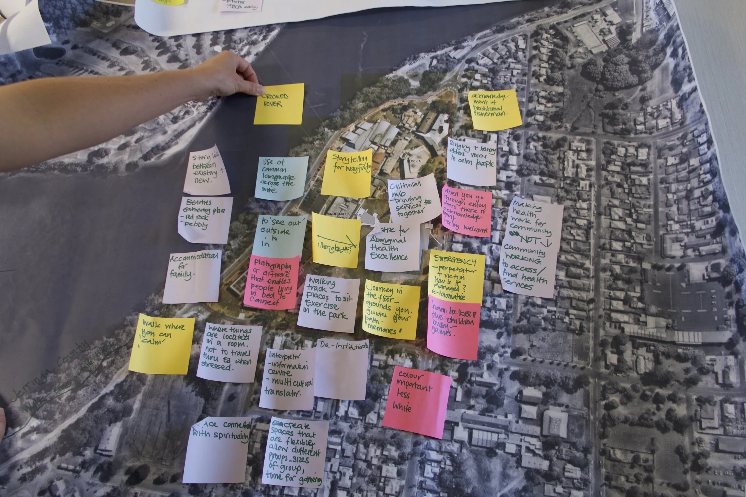 Yerrabingin was involved in initial design discussions around extending the existing Shoalhaven Hospital. We met with the project team and local Aboriginal community to facilitate a Design Jam co-design workshop and explore key concepts and ideas to inform the hospital master plan.